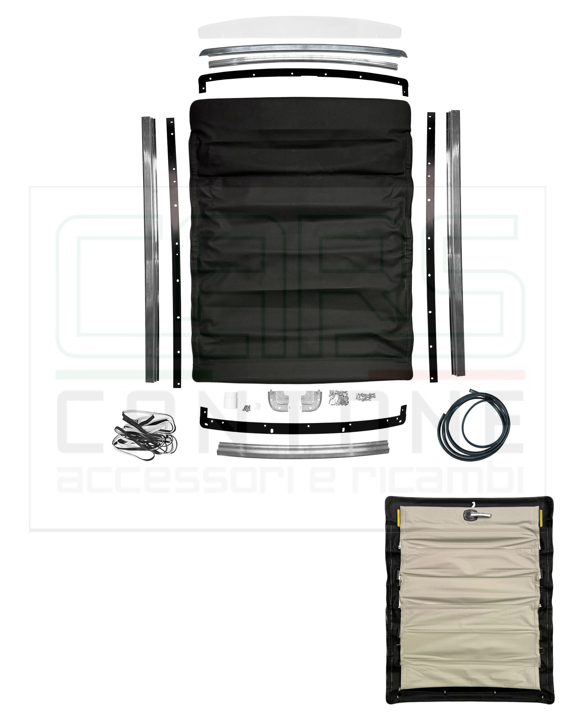 TETTUCCIO SCORREVOLE TELA CURVO 96CM X 126CM COMPLETO T1 NERO 3 PIEGHE